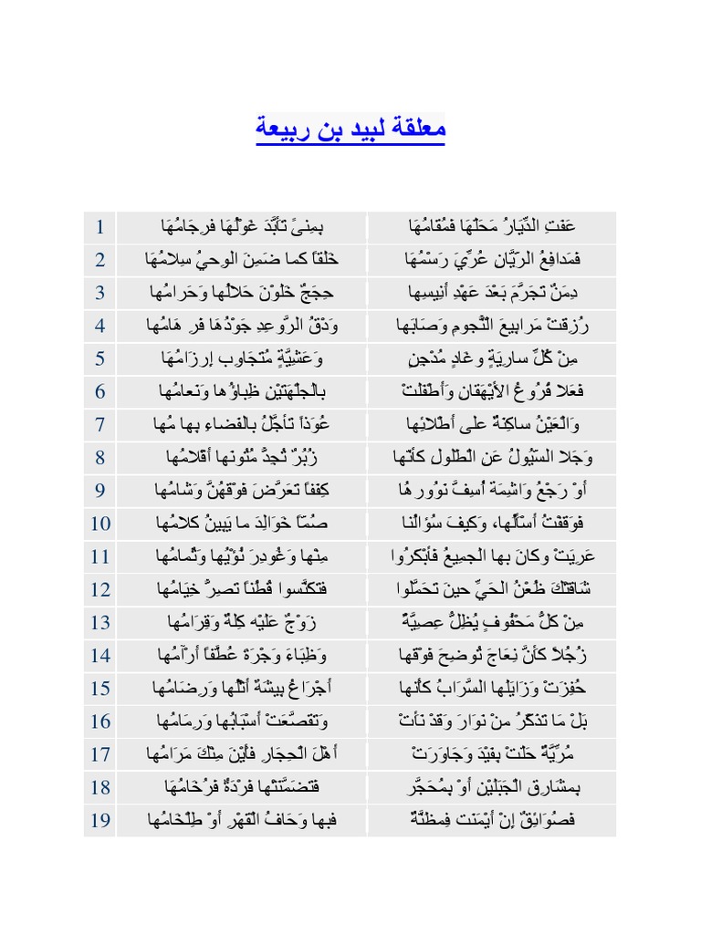 فيصل المنصور On Twitter ٧ ٧ معلقة لبيد بن ربيعة مقروءة مسموعة بضبطي وإلقائي Https T Co Xh2jcl3mqt رابط الاحتمال Https T Co Ui6hyo1uwa Https T Co Hgzvewzc7v