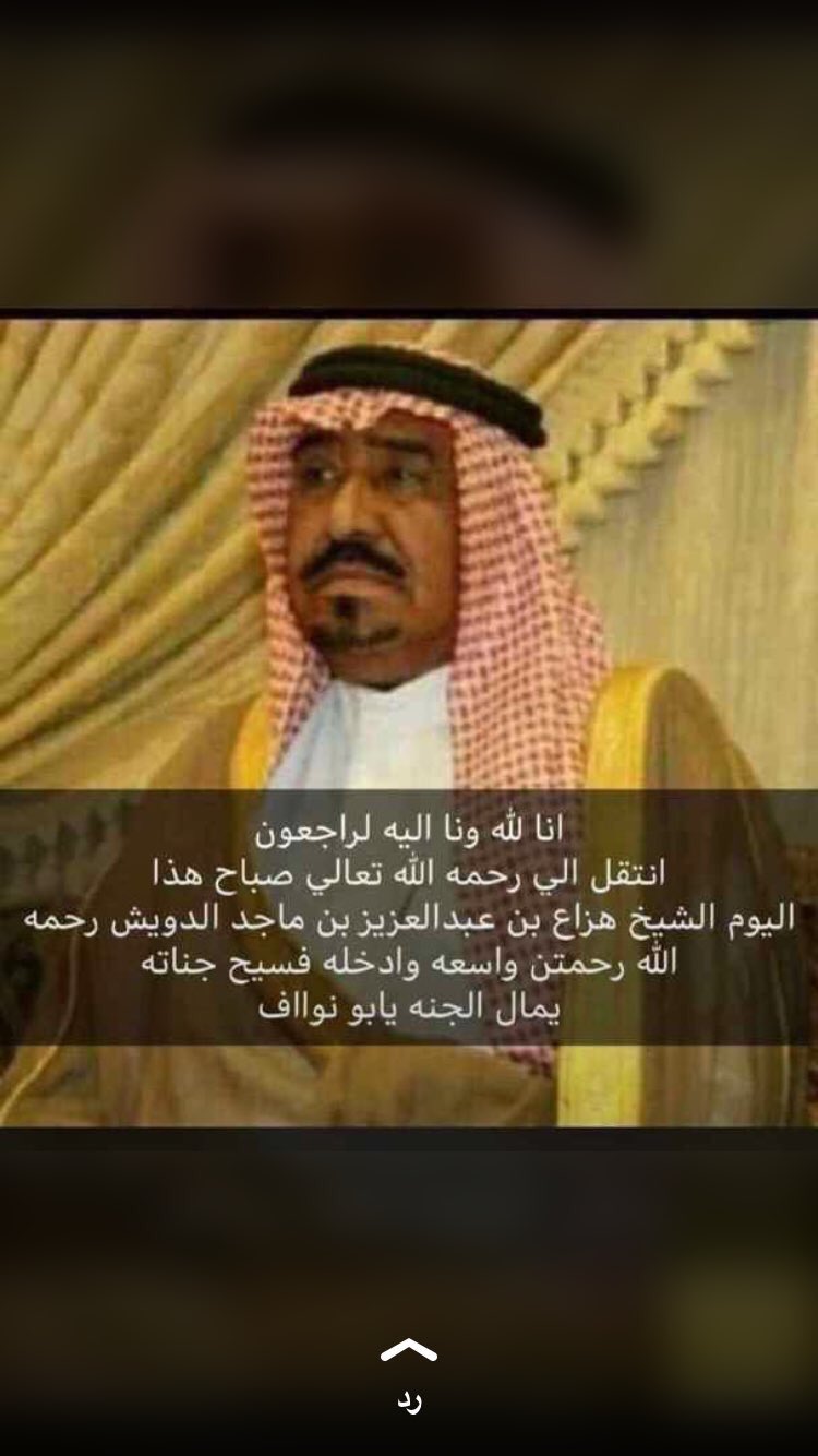 القاعي ة בטוויטר بقلوب مطمئنة وأنفس راضية بما كتب الله نعزي أنفسنا وأسرة الدوشان وقبيلة مطير كافة في وفاة الشيخ هزاع بن عبدالعزيز بن عبدالله بن ماجد الفيصل الدويش رحمه الله رحمة